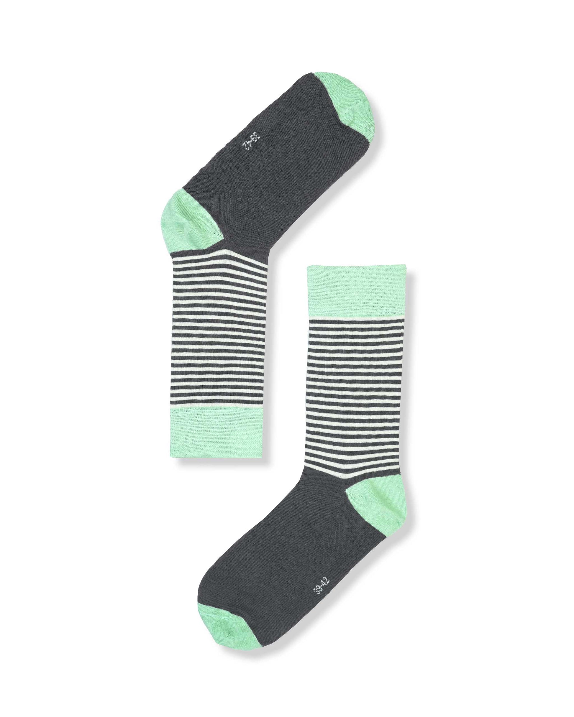 Feingarn | schmaler Schnitt | Bund mit festem Halt ohne Druckstellen | venenfreundlich | mint-creme-anthrazit | 2x gestreift, 2x gepunktet